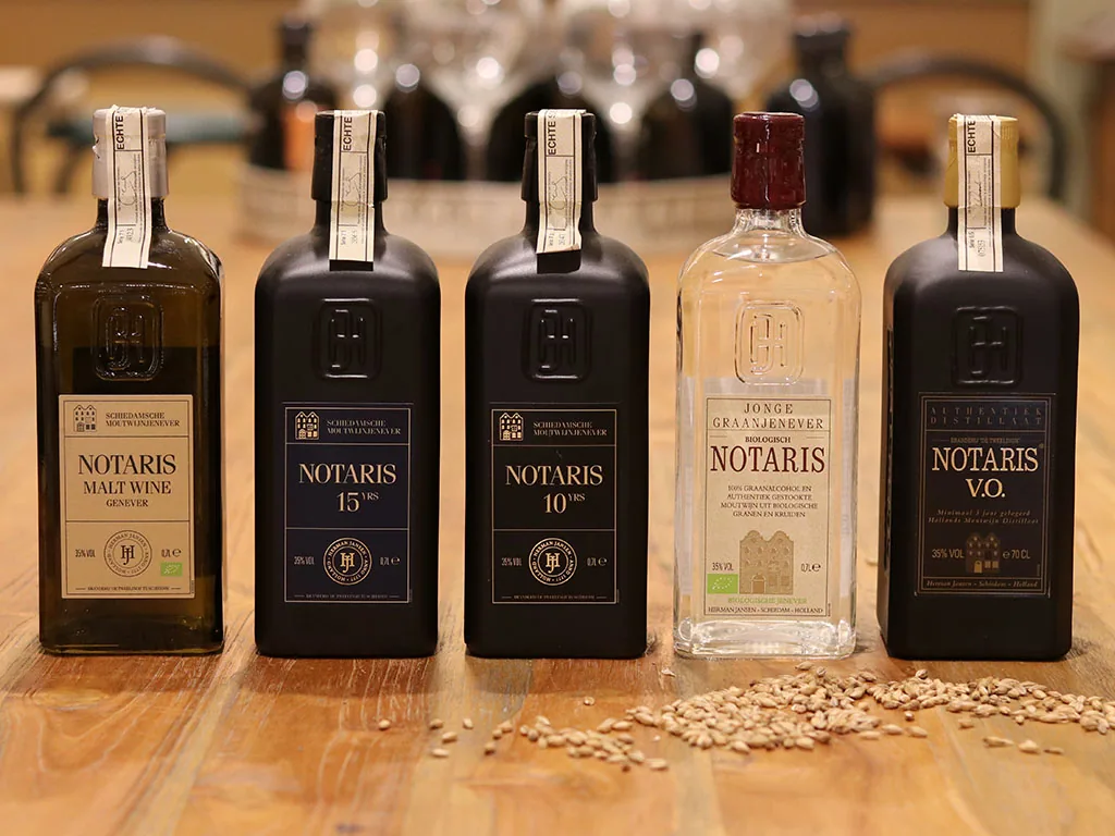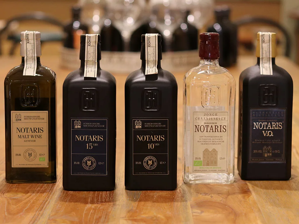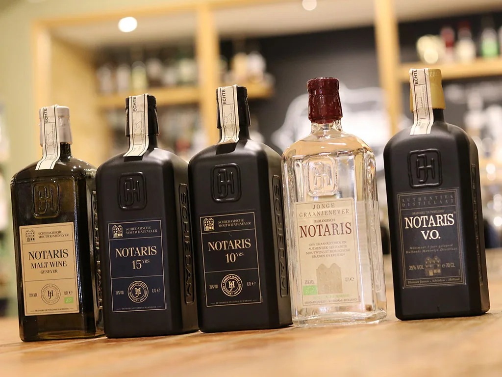 Notaris Jenever mag het Schiedamsche echtheidszegel dragen. Dit zegel garandeert dat de jenever volgens de strenge Schiedamse verordeningen is gestookt uit 100% moutwijn. Jenever uit moutwijn stoken is een stuk arbeidsintensiever, maar het levert een smaakvollere jenever op. En dat proef je!