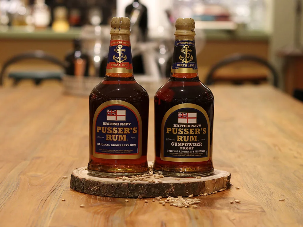Vroeger was alles beter. Ook als je bij de Britse marine zat. Tegenwoordig is rum niet meer toegestaan, maar destijds kregen de onverschrokken mariniers dagelijks een glas rum van de Purser aan boord. Dit is later verbasterd naar Pusser, waar de rum ook naar is vernoemd. Zowel in de standaard uitvoering te verkrijgen, als in de "gunpowder proof' versie. Destijds werd er een beetje buskruit in de rum gedaan. Als de rum begon te branden, dan was hij op sterkte. Zo niet, dan had je hem met water aangelengd en werd je overboord gegooid.