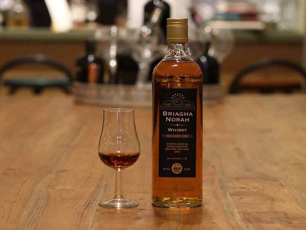 Een hele mooie blend met een behoorlijk gehalte aan single malt. Gebotteld op 43%, wat net even wat meer body geeft aan de whisky, maar er zitten geen geturfde whiskies in deze blend, wat haar een mooie fruitige smaak geeft.